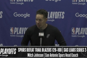 体育资讯4月25日 NBA季后赛西部首轮G3,马刺120-108战胜开拓者,大比分2-1领先,赛后米奇·约翰逊接受了媒体采访,以下为采访全文。