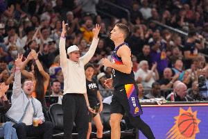 体育资讯4月28日讯 NBA,太阳上半场以67-75落后雷霆。 上半场比赛,吉莱斯皮出战15分21秒,投篮6中6,三分5中5,得到17分1篮板1抢断; 格雷森·阿伦出战9分46秒,投篮4中4,三分2中2,罚球2中2,得到12分2篮板1助攻。