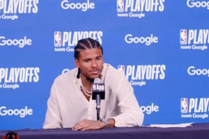 记者: 杰伦,现在看你的第二个季后赛系列赛,你觉得自己在哪方面成长最多?对比一下上赛季这个时刻发生的情况。