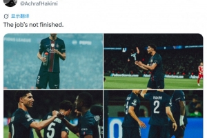 体育资讯4月29日讯 欧冠半决赛首回合比赛,阿什拉夫送出助攻,巴黎主场5-4击败拜仁 阿什拉夫终场前受伤,但巴黎已经用完换人次数,因此他只能在场上一瘸一拐坚持。 赛后阿什拉夫社媒晒出比赛照片,配文:“任务尚未完成。”