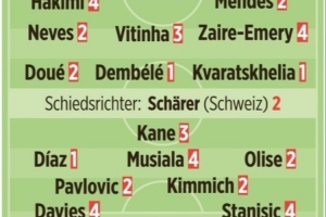 图片报赛后评分:K77、迪亚斯、登贝莱均1分最佳 戴维斯、帕乔4分