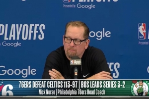 体育资讯4月29日讯 首轮系列赛G5,76人客场力克凯尔特人,将大比分追至2-3,76人主帅尼克·纳斯赛后接受了媒体采访,以下为完整采访内容。